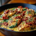 A creamy, herb-infused dish featuring tender chicken, vibrant sun-dried tomatoes, and fresh spinach, perfect for weeknight dinners or family gatherings.