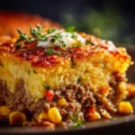 A comforting dish combining ground beef, corn, and cornbread for a warm, filling family meal.